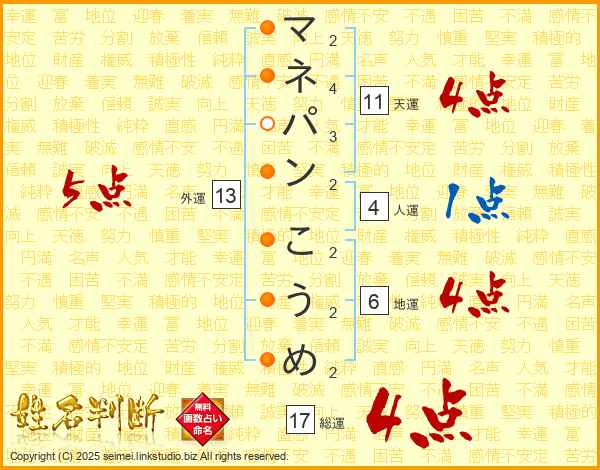 マ(2画)ネ(4画)パ(3画)ン(2画) こ(2画)う(2画)め(2画)