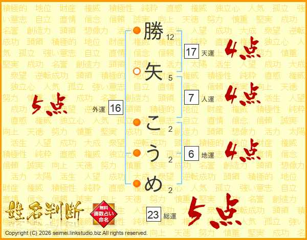 勝矢こうめさんの総運は23画の5点!