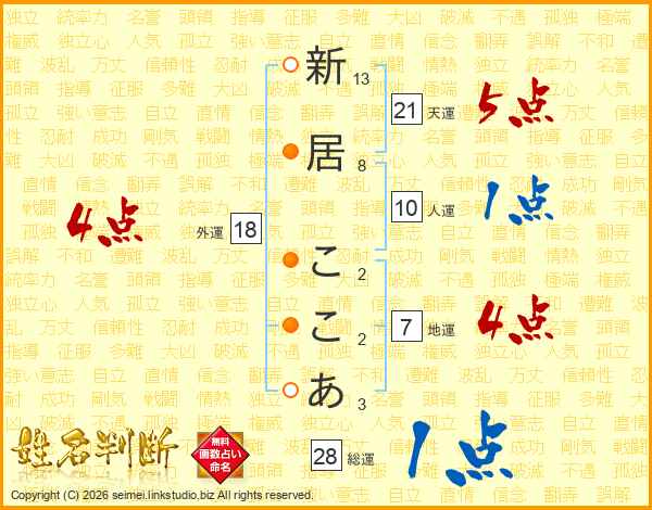 新(13画)居(8画) こ(2画)こ(2画)あ(3画)