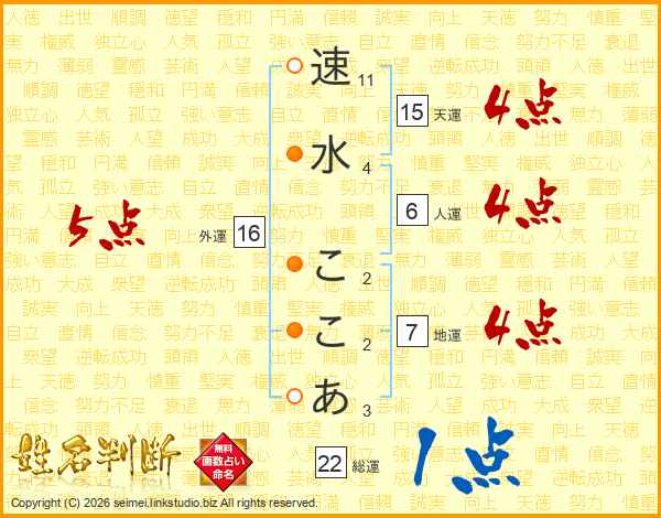 速水ここあさんの総運は22画の1点!