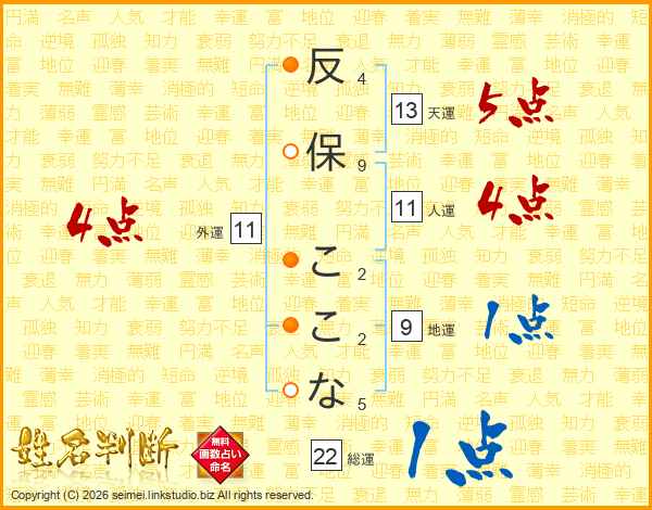 反保ここなさんの総運は22画の1点!