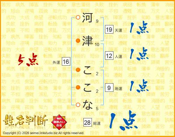河(9画)津(10画) こ(2画)こ(2画)な(5画)
