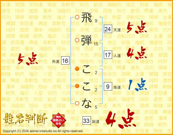 飛弾ここなさんの総運は33画の4点!
