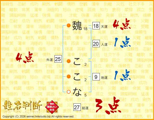 魏ここなさんの総運は27画の3点!