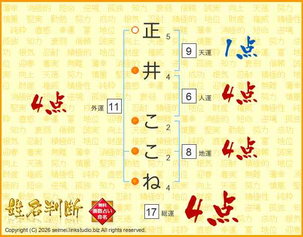 正井ここねさんの総運は17画の4点!