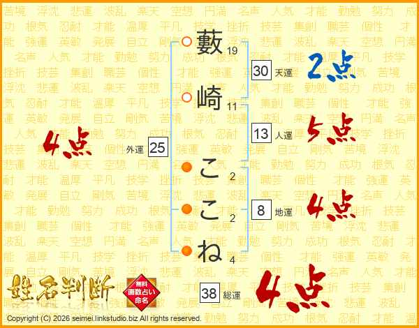 藪(19画)崎(11画) こ(2画)こ(2画)ね(4画)
