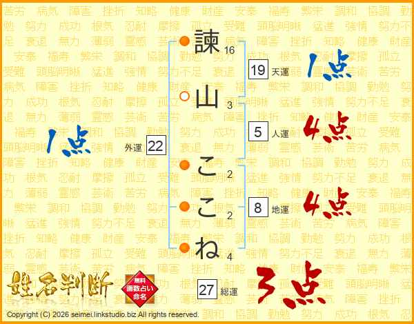 諫(16画)山(3画) こ(2画)こ(2画)ね(4画)