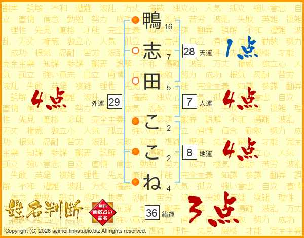 鴨志田ここねさんの総運は36画の3点!