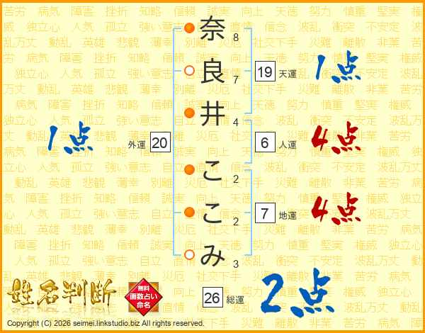 奈(8画)良(7画)井(4画) こ(2画)こ(2画)み(3画)