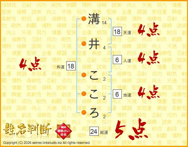 溝井こころさんの天運は18画の4点!
