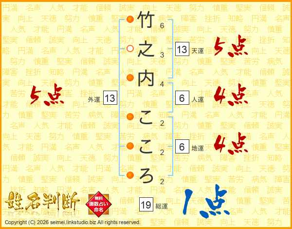 竹之内こころさんの外運は13画の5点!
