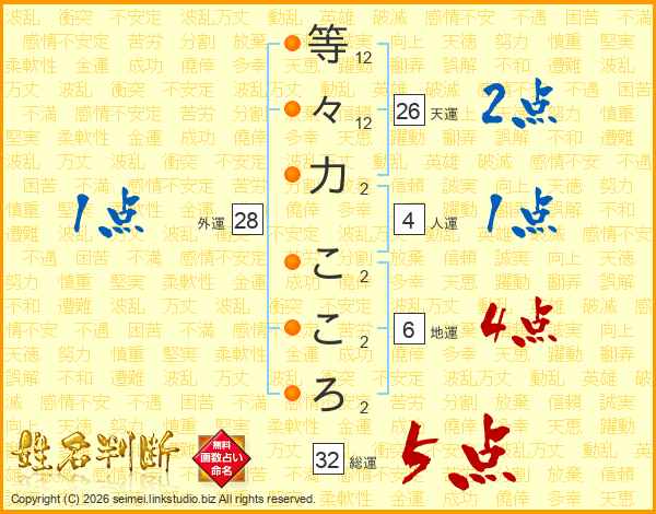 等々力こころさんの天運は26画の2点!