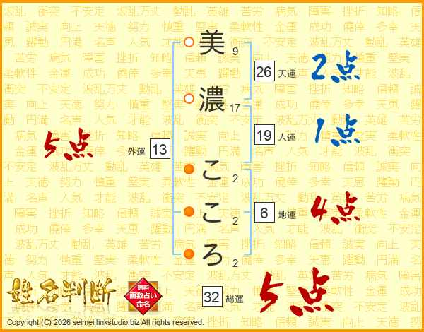 美濃こころさんの総運は32画の5点!
