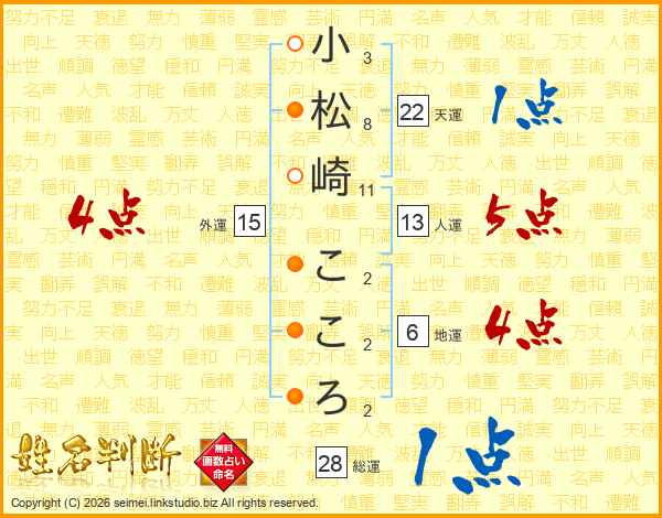 小松崎こころさんの総運は28画の1点!