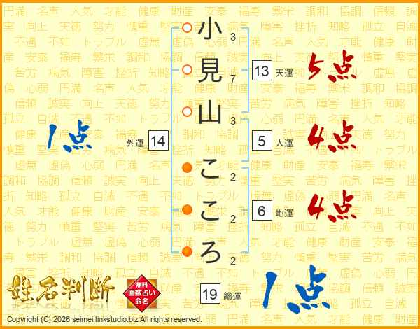 小見山こころさんの外運は14画の1点!