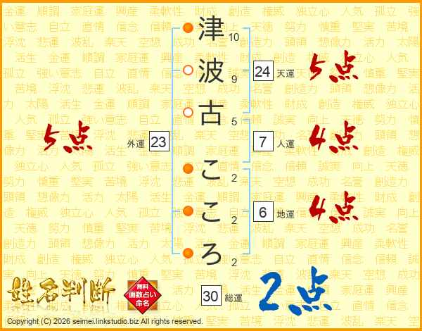 津波古こころさんの総運は30画の2点!