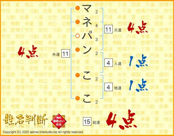 マ(2画)ネ(4画)パ(3画)ン(2画) こ(2画)こ(2画)