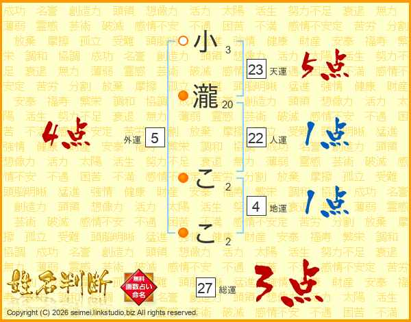 小瀧ここさんの総運は27画の3点!