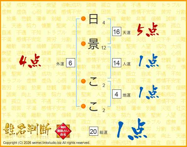 日景ここさんの総運は20画の1点!
