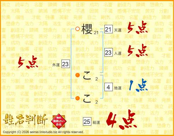 櫻ここさんの総運は25画の4点!