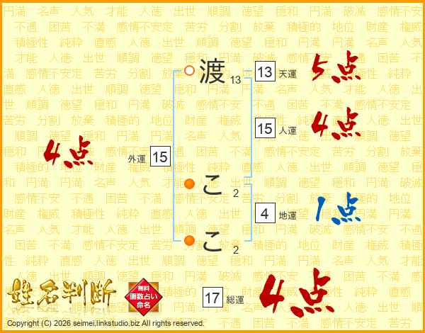 渡ここさんの総運は17画の4点!