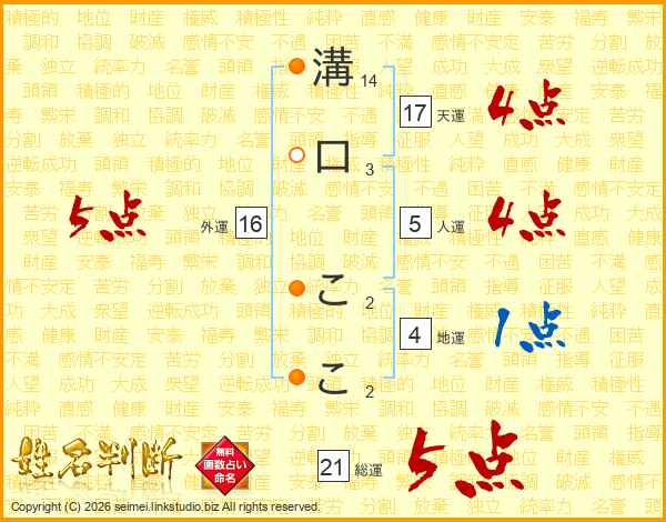 溝口ここさんの総運は21画の5点!