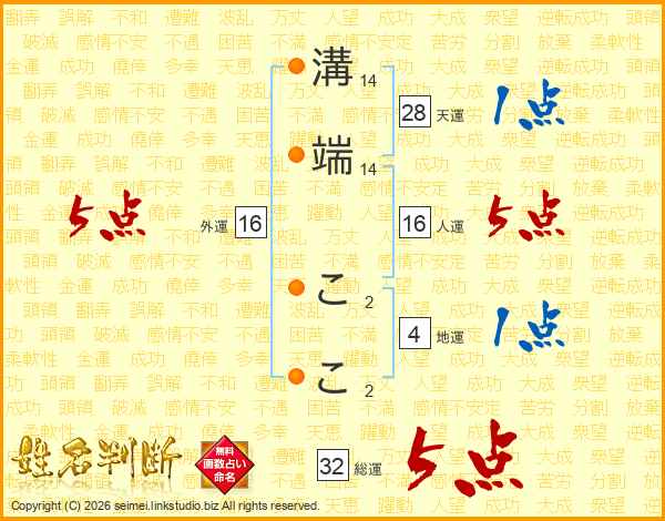 溝端ここさんの総運は32画の5点!