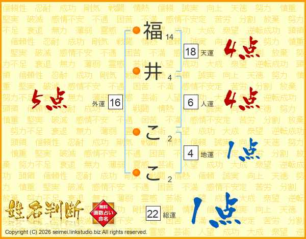 福井ここさんの総運は22画の1点!
