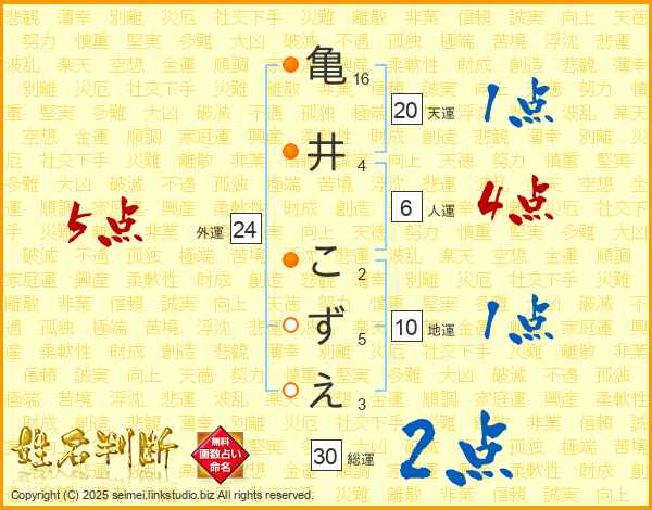 亀井こずえさんの総運は30画の2点!
