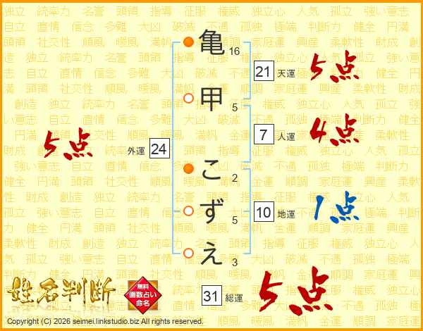 亀甲こずえさんの総運は31画の5点!