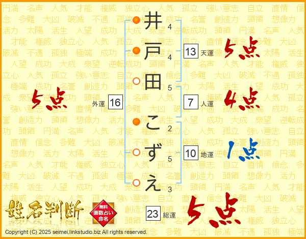 井(4画)戸(4画)田(5画) こ(2画)ず(5画)え(3画)
