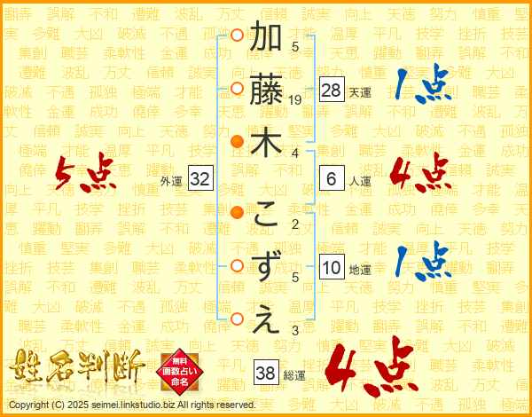 加(5画)藤(19画)木(4画) こ(2画)ず(5画)え(3画)