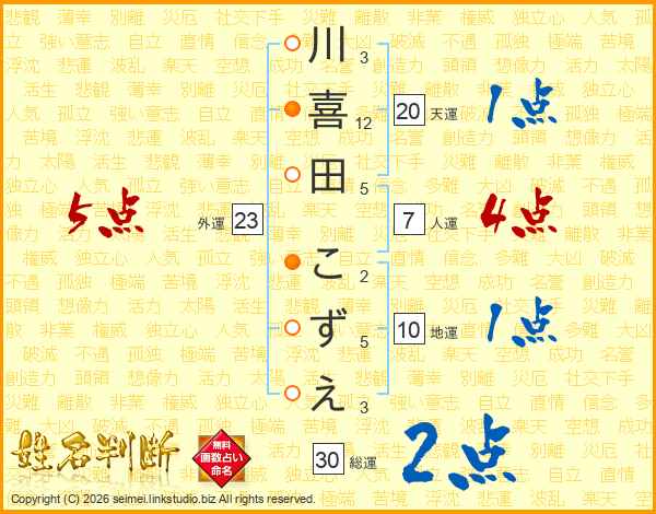 川喜田こずえさんの外運は23画の5点!