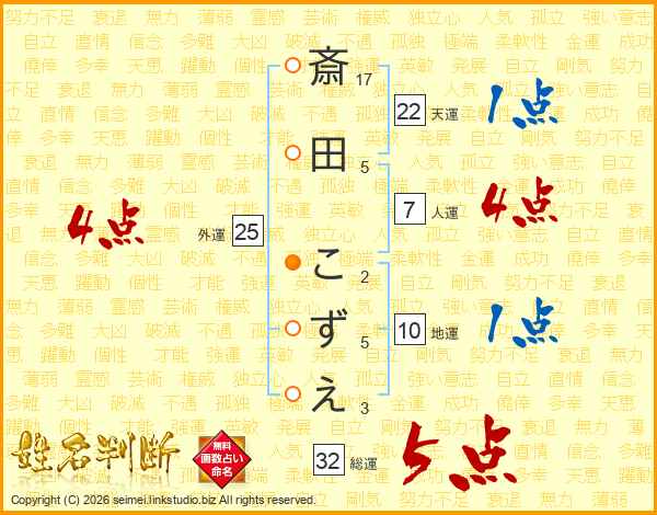 斎(17画)田(5画) こ(2画)ず(5画)え(3画)