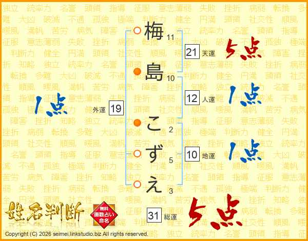 梅島こずえさんの総運は31画の5点!