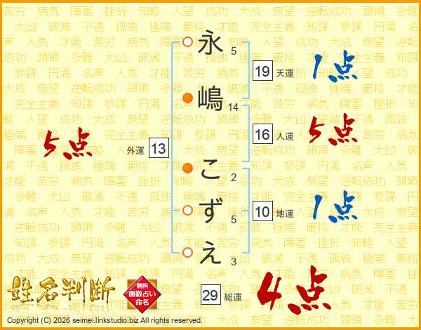 永嶋こずえさんの外運は13画の5点!
