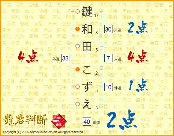 鍵和田こずえさんの総運は40画の2点!