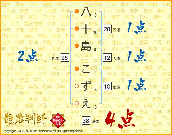 八十島こずえさんの総運は38画の4点!