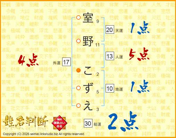 室野こずえさんの総運は30画の2点!