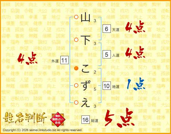 山(3画)下(3画) こ(2画)ず(5画)え(3画)