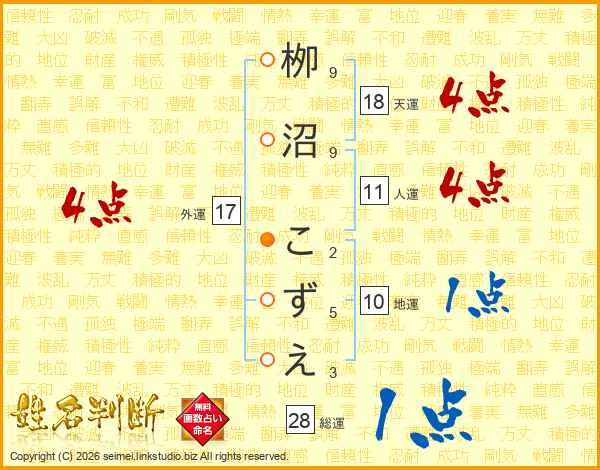 栁沼こずえさんの外運は17画の4点!