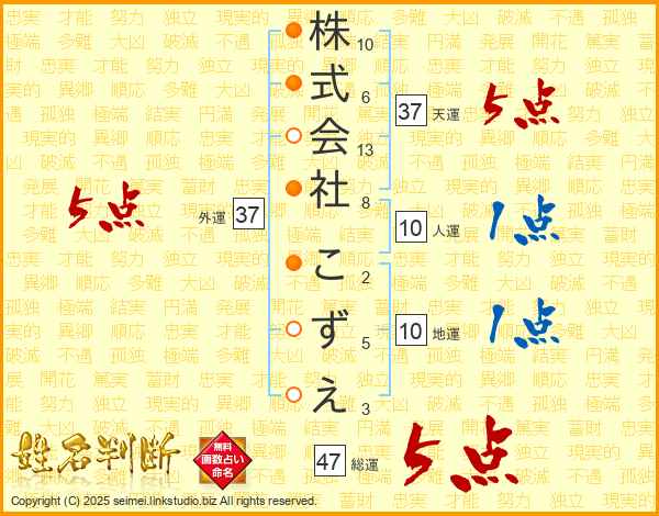 株式会社こずえさんの天運は37画の5点!