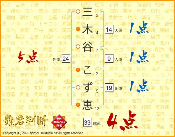 三(3画)木(4画)谷(7画) こ(2画)ず(5画)恵(12画)