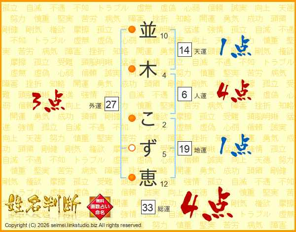 並木こず恵さんの総運は33画の4点!