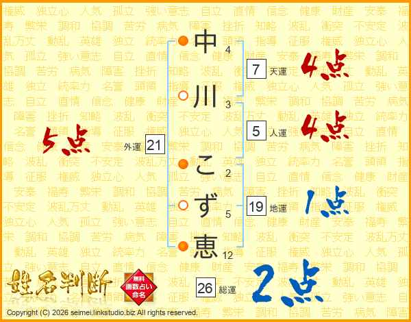 中川こず恵さんの外運は21画の5点!