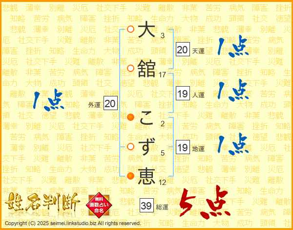 大(3画)舘(17画) こ(2画)ず(5画)恵(12画)