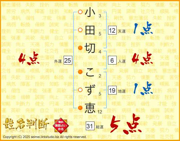 小田切こず恵さんの総運は31画の5点!