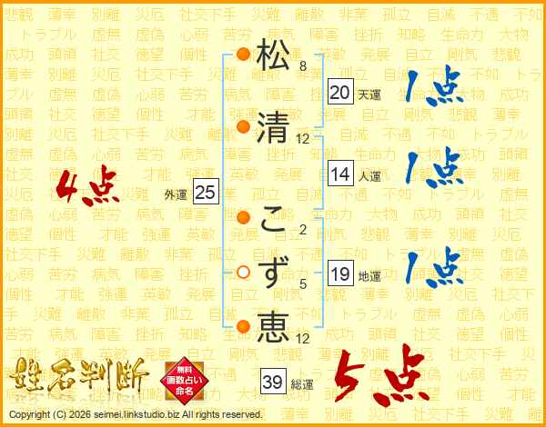 松清こず恵さんの総運は39画の5点!