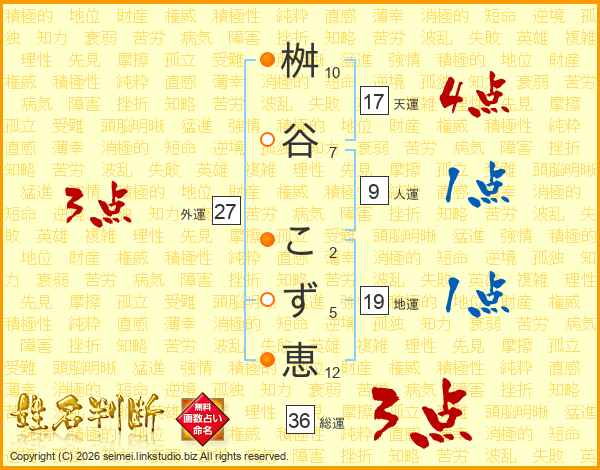桝谷こず恵さんの総運は36画の3点!