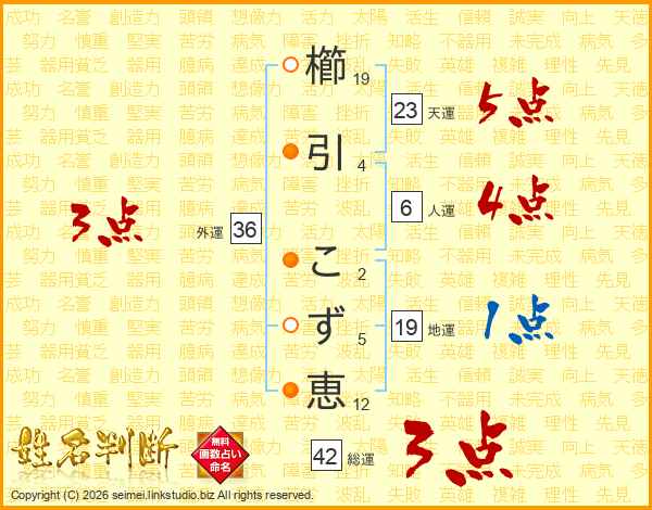 櫛引こず恵さんの天運は23画の5点!